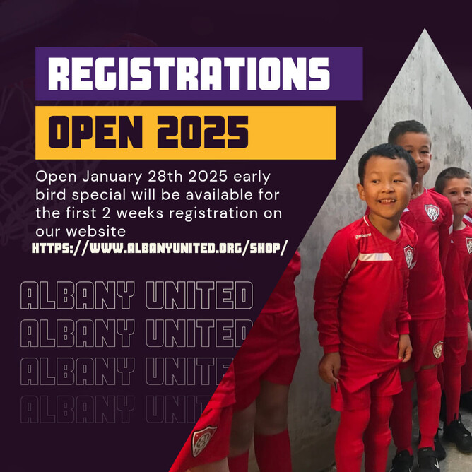 Albany United Football Club Registrations Open 28th January! We’re excited to announce that registrations for the 2025 season will open on Tuesday, 28th January. Take advantage of our Early Bird Special running for the first two weeks—don’t miss out!